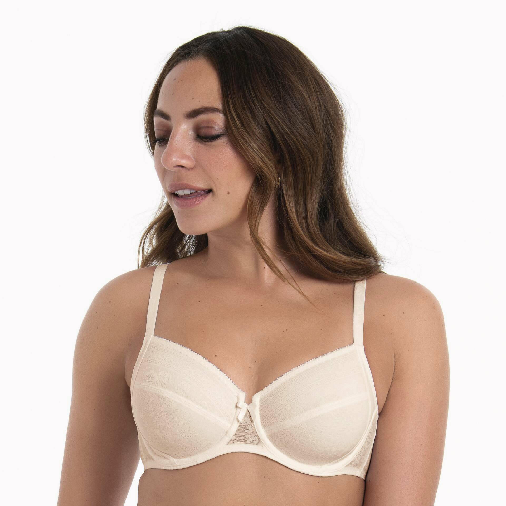 Selena nedrček je nežen, udoben in čipkast. Ne podložene košarice z oporo so iz mehkih mikrovlaken. Naramnice iz satena poudarijo eleganten videz